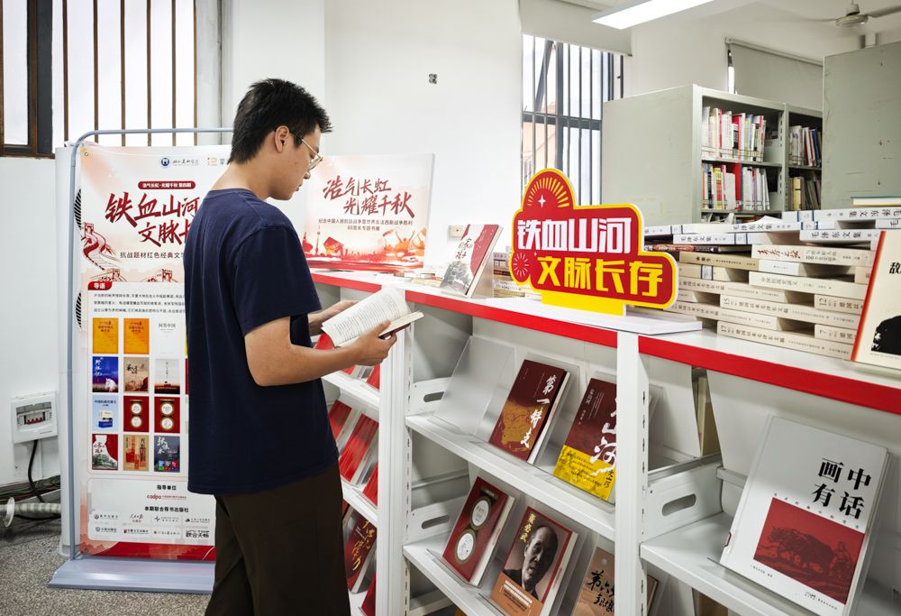 九月,图书馆联合掌阅精选电子资源数据库,在藏龙岛校区A11中文书库举办了“浩气长虹,光耀千秋——纪念中国人民抗日战争暨世界反法西斯战争胜利80周年专题书展”线下展。