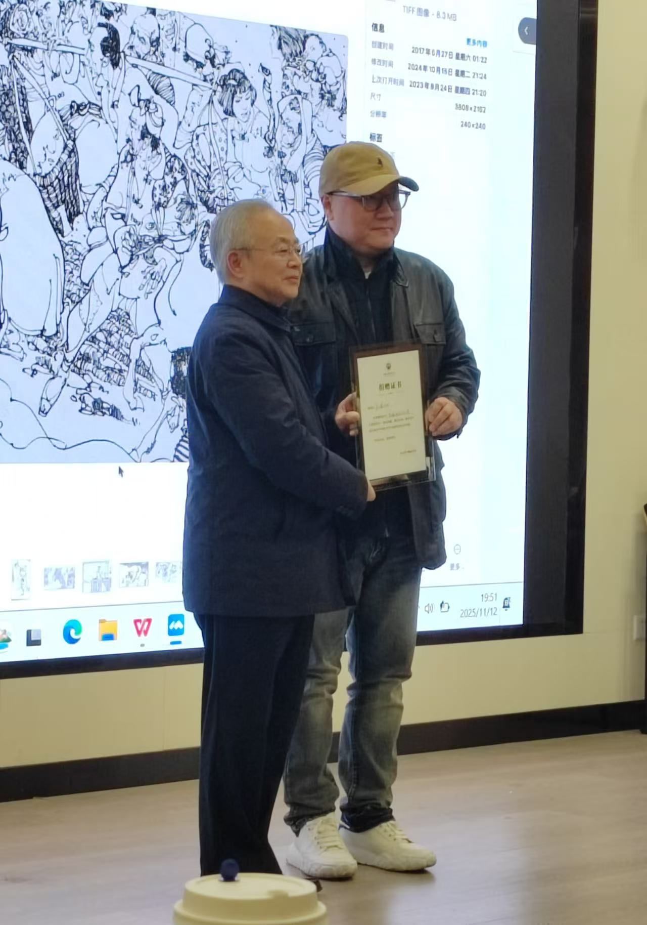2025年11月12日19:00——21:00,李乃蔚名师创作教学系列讲座《从一根线开始——李乃蔚线描创作谈暨新书分享会》在湖北美术学院藏龙岛校区成功举办。